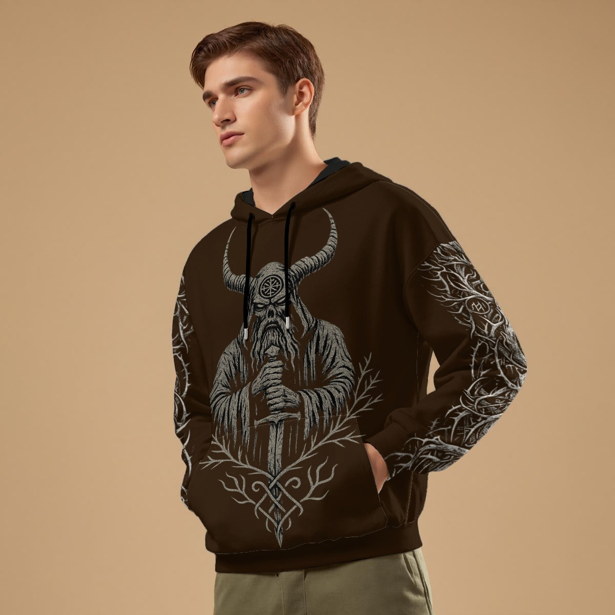 - Langer Ärmel, Schlingenmuster innen, mit Kordelzug, Kängurutasche
