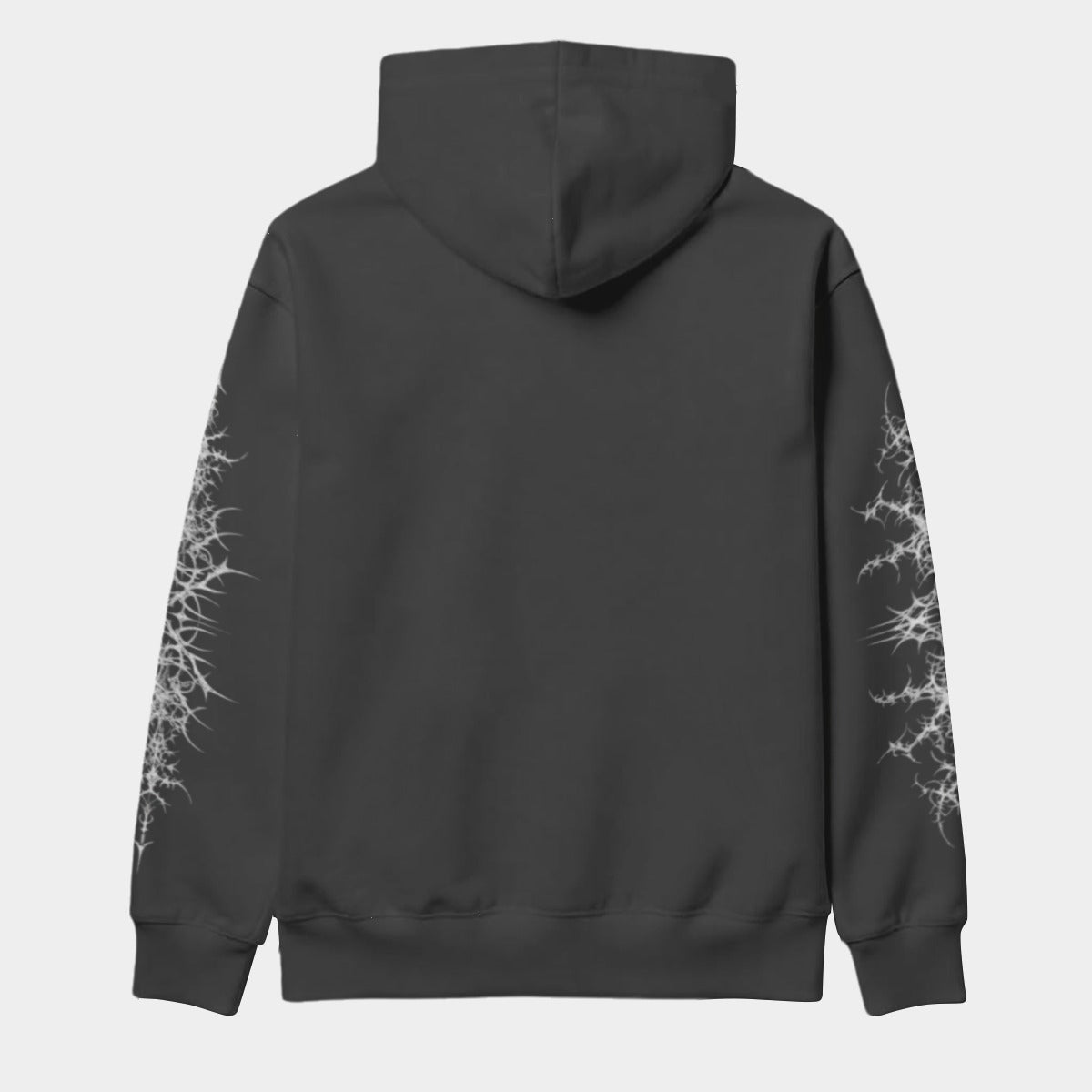 - Elemente: Weißer Kordelzug, Vordertasche und schwarze Kapuzeninnenseite