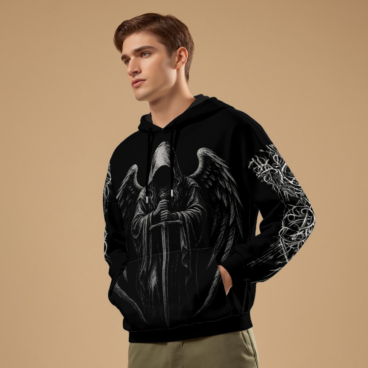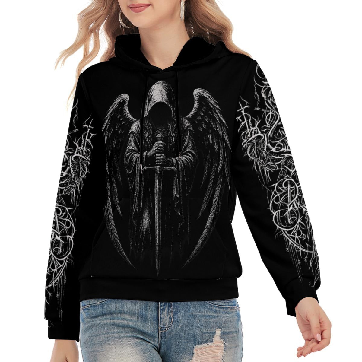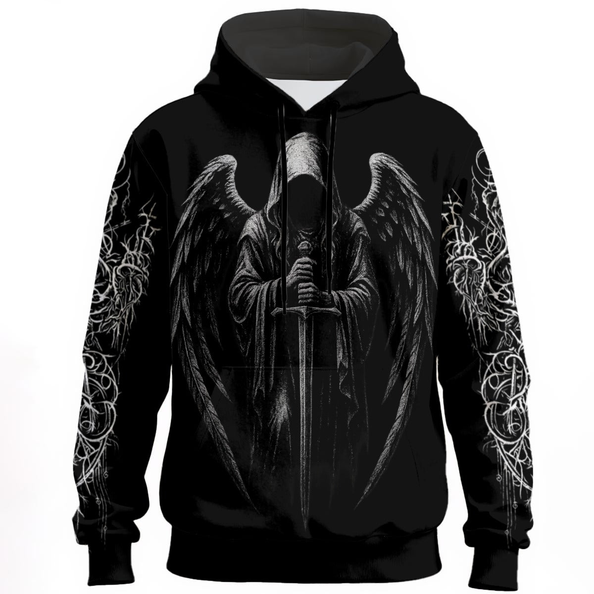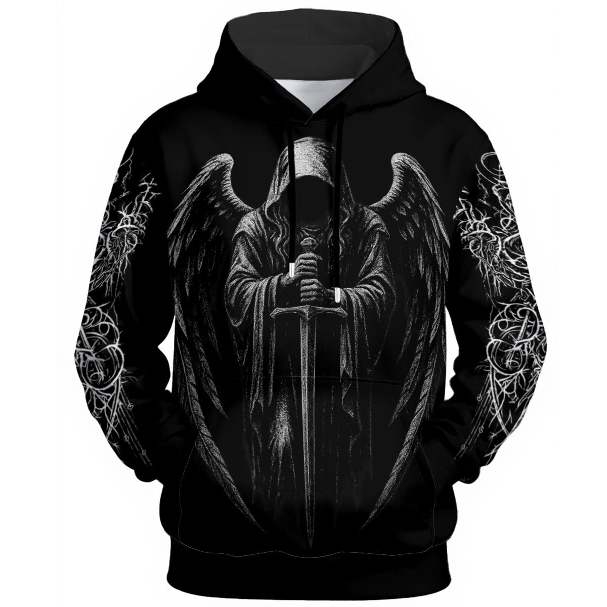 Dunkles Gothic-Design Kapuzenpullover mit Todesengel und Flügeln