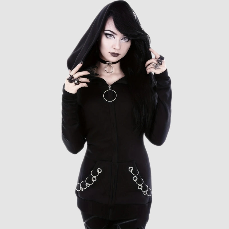 - Schnitt: lockerer Kapuzenpullover mit Reißverschluss