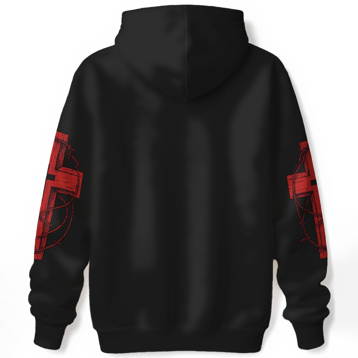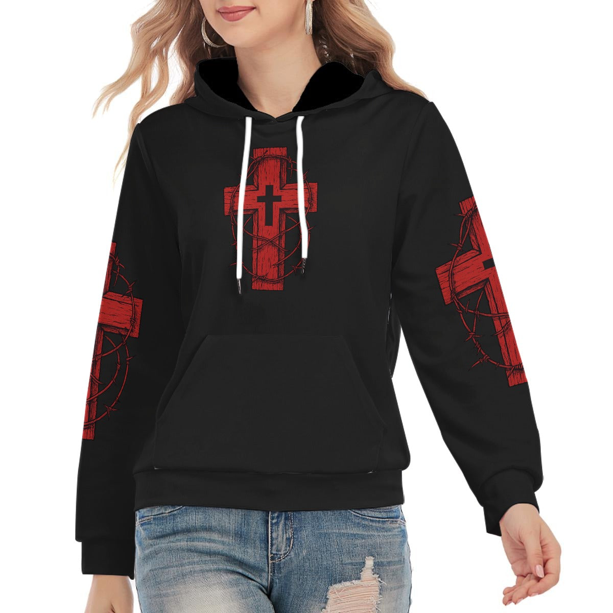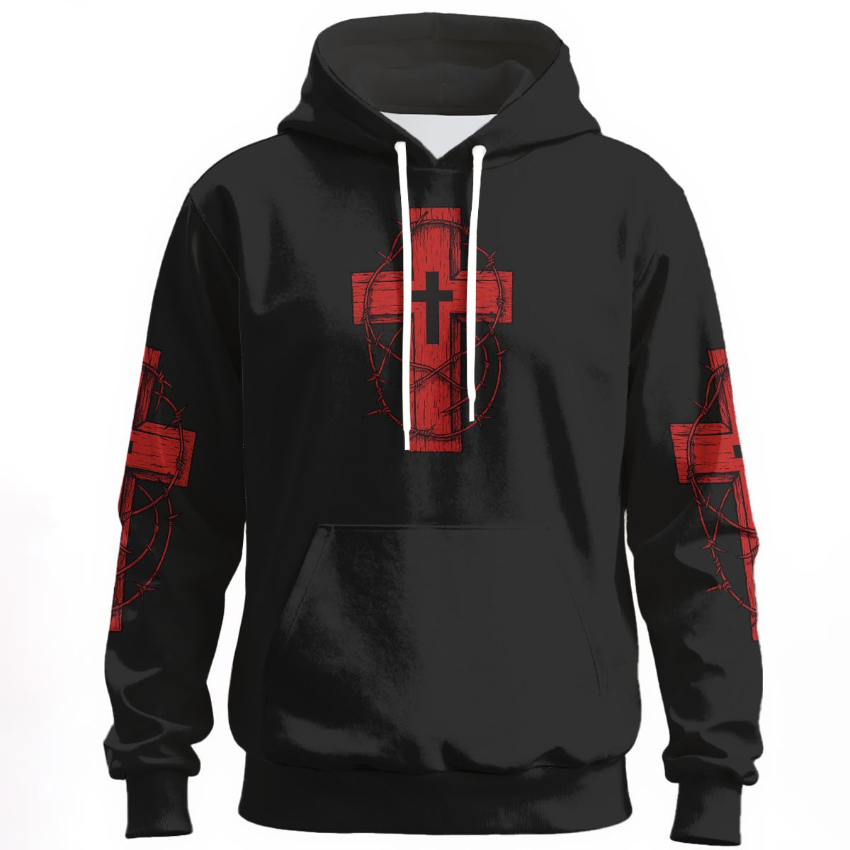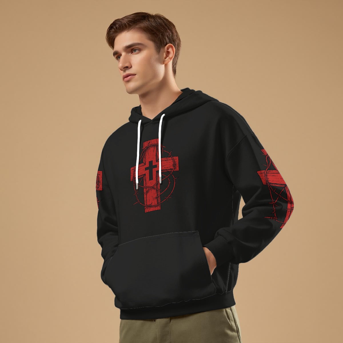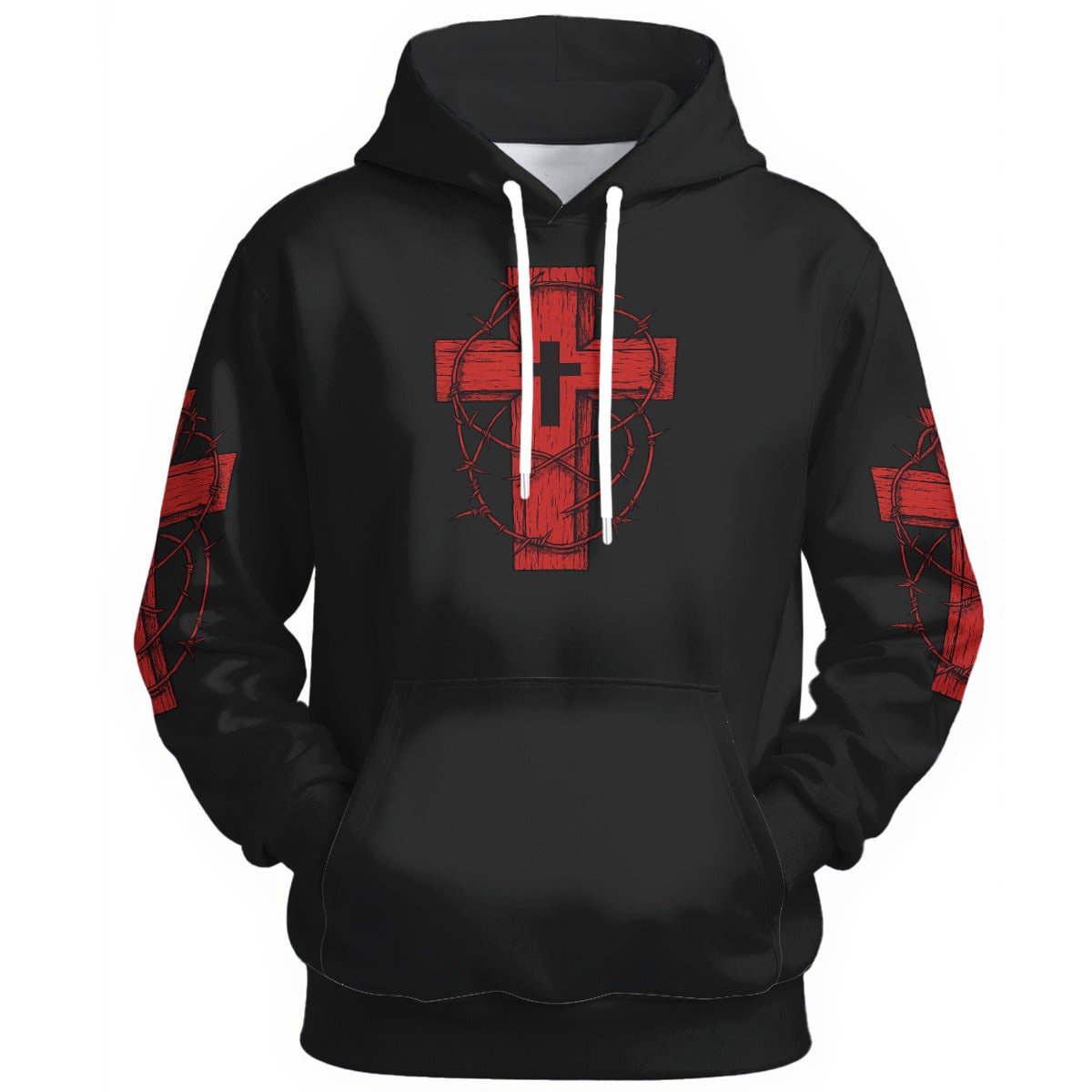 Gothic Hoodie mit rotem Kreuz und Dornenkrone