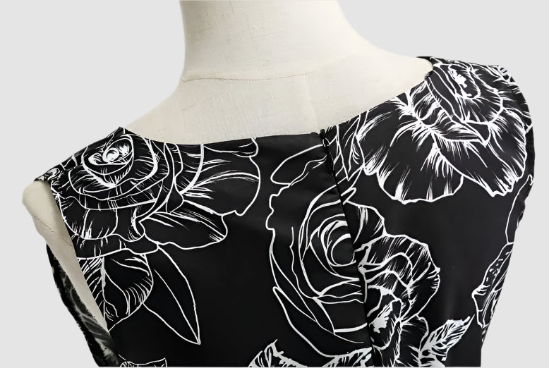 - Schnitt: A-Linien-Kleid, knielang