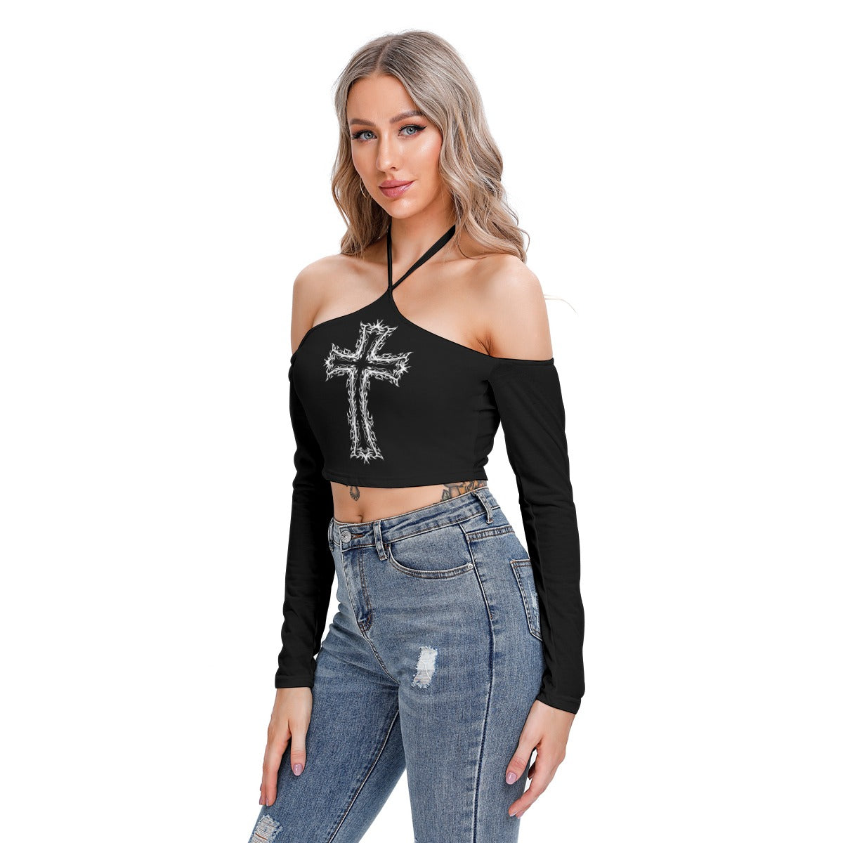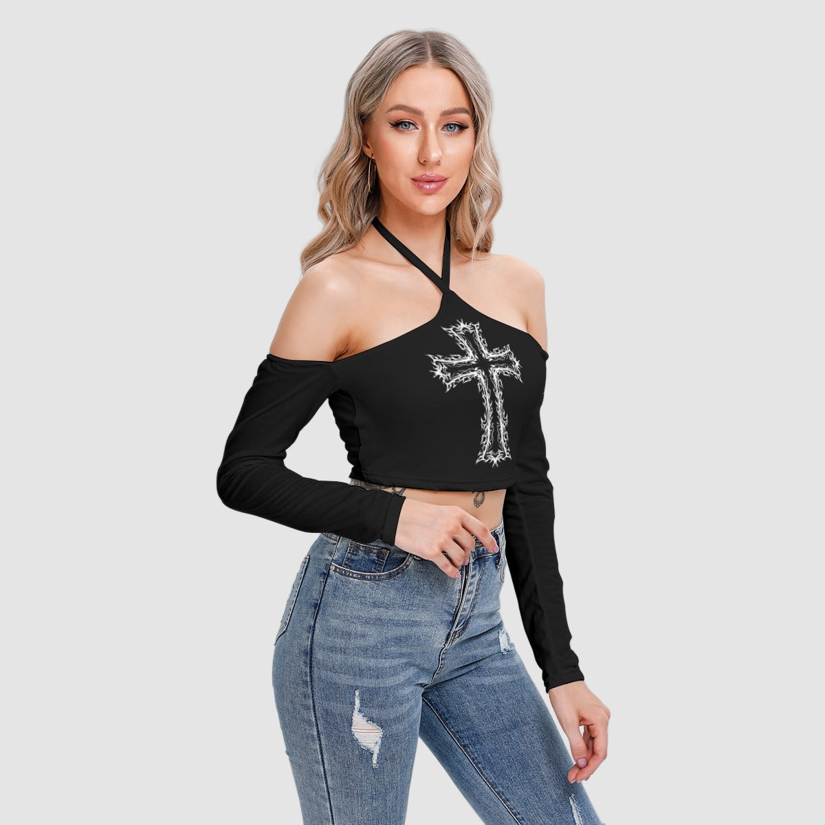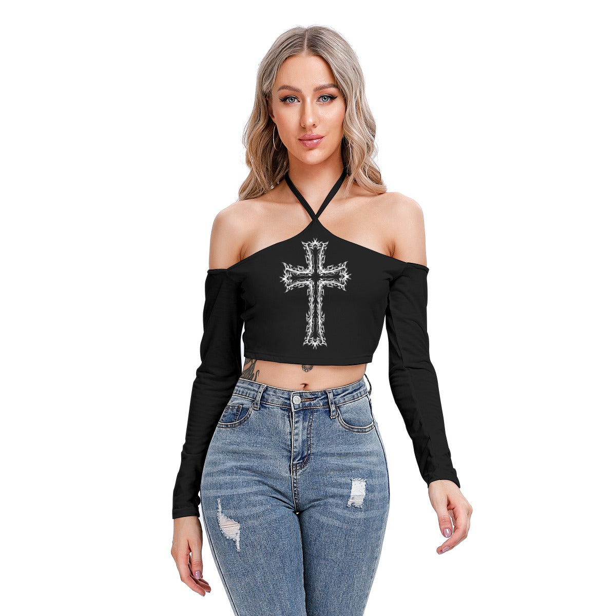 - Langer Ärmel, Nackenbindung, schulterfrei, Vorderteil mit Futter