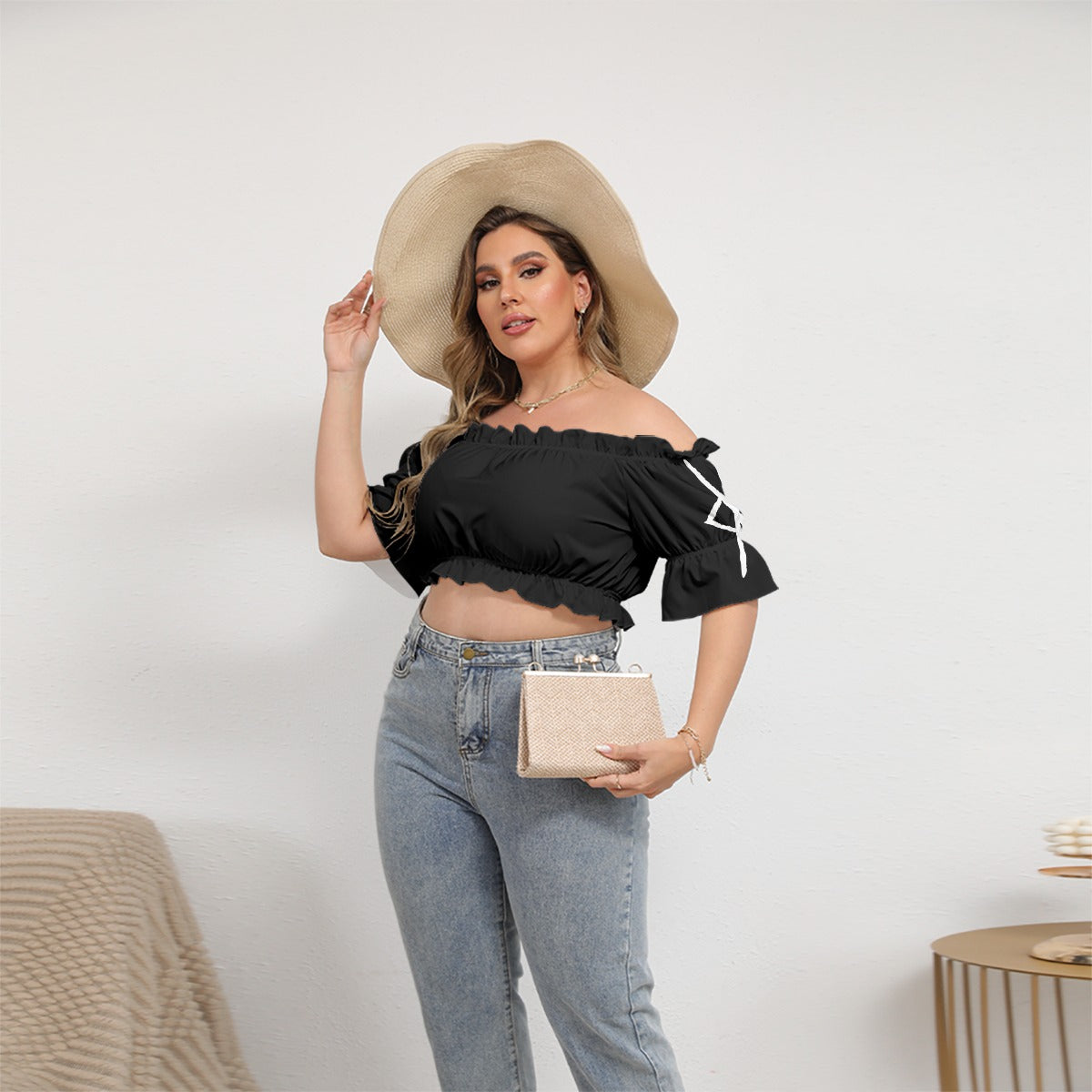 - Kurzer Puffärmel, schulterfrei, mit Bindung